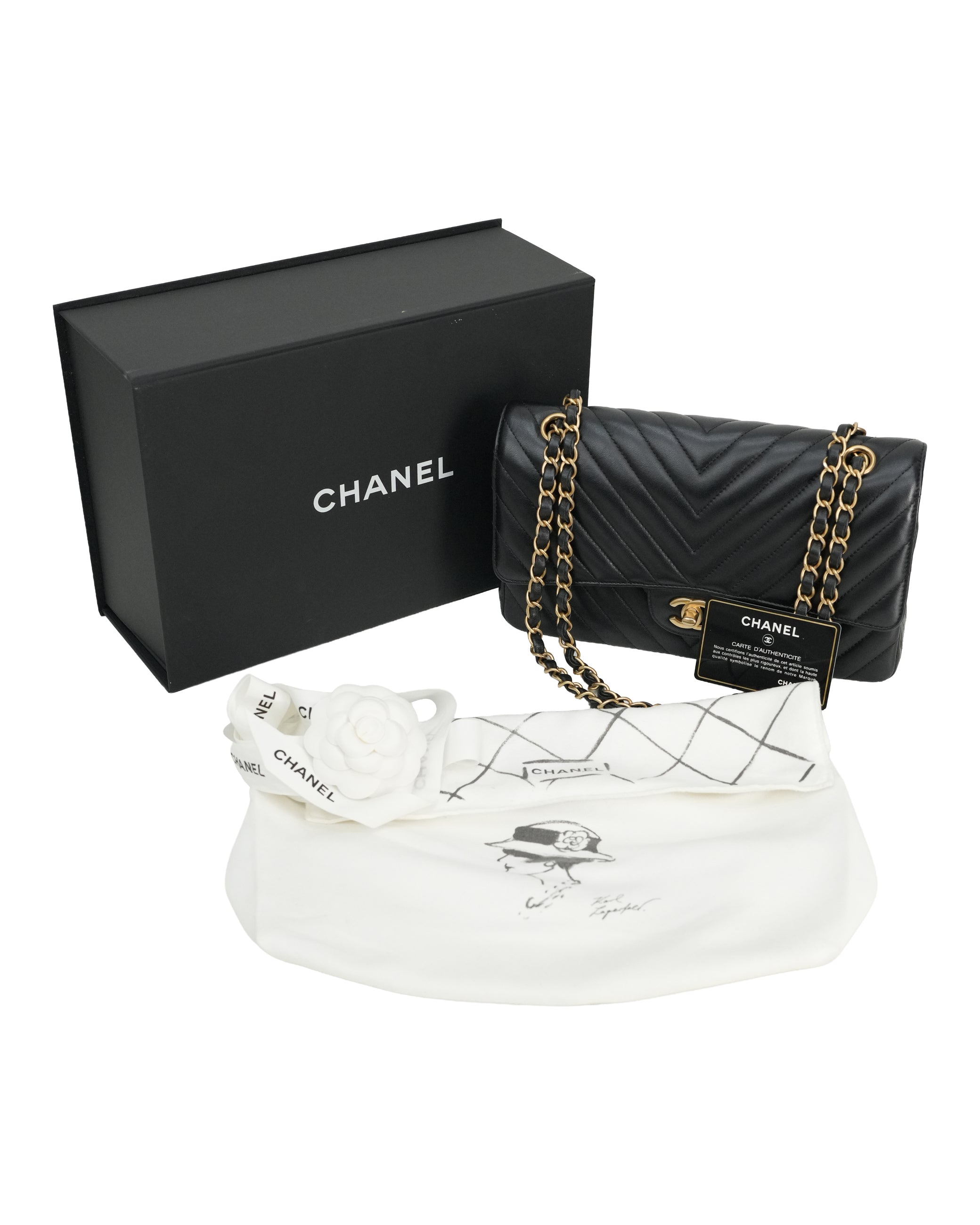 CLASSIC DOUBLE FLAP MEDIUM CHEVRON LAMBSKIN (MATTE) GHW BLACK
