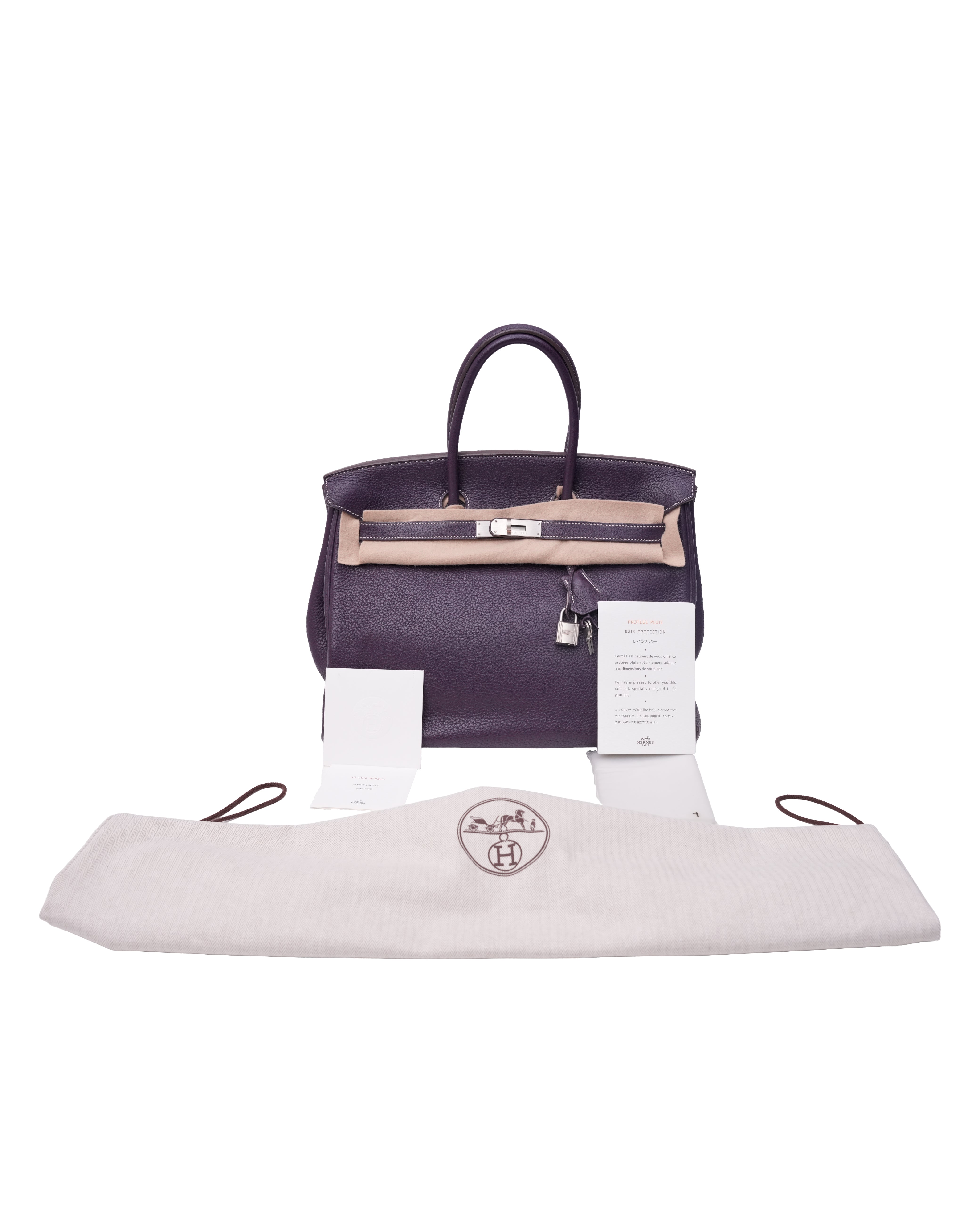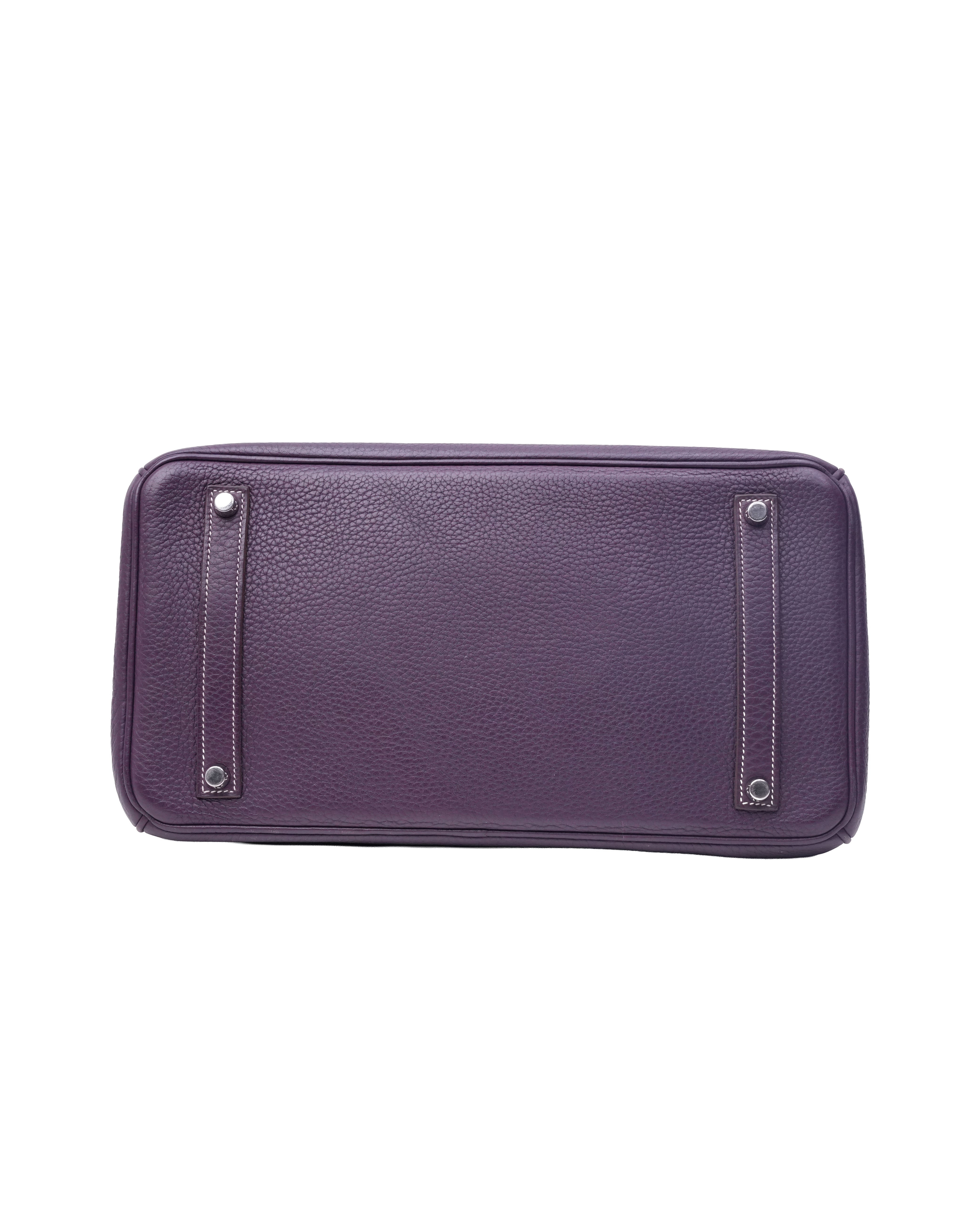 BIRKIN 35 RAISIN CLEMENCE LEATHER BRUSHED PALLADIUM HARDWARE STAMP N